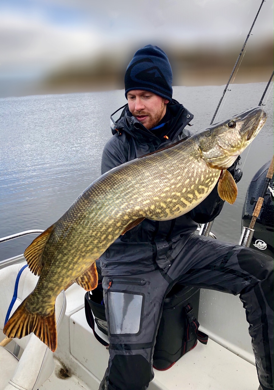 As you might know, Sarah also works at the camp since many years back, and she's been eager to catch a big fish to. Several times she have caught fish over +90cm, which isn't bad, but a meter pike has been her target (of course!). This time she managed to break the three digit mark with a beautiful fish! With shaky arms she was ready to give the fish a hug and a quick photo session. Not a bad way to start and to end the fishing season!