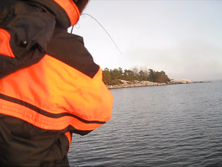 Brorsan har en fin havsöring på kroken, men lyckas inte visa fisken vem som bestämmer.