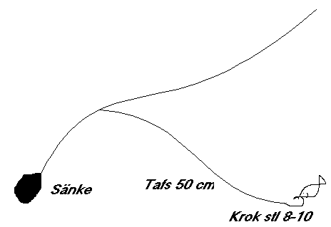 Sink and draw är inte som flötestrolling. Sink and draw är vad det heter, sjunk och dra in. Man använder ett tackel som heter pater noster. Jag bifogar en bild. Man kastar ut och låter det ligga nån minut och sen drar man in ett par meter och låter det ligga en liten stund (ca30 sek)...osv.osv.. Denna metod använder man främst för abborre med en liten mört som bete. Det e mycket effektivt. I höstas tog vi i vår klubb (FK Specimän) på 6 pass 33 abborrar över kilot med en topp på 1,7kg. Men man kan även använda denna metoden till gädda, men då måste man ha en ståltafs. Hoppas du förstod..Fan, jag glömde kameran hemma!!!