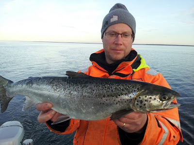 Efter några timmars åkande i blindo och några smålaxar så blir vår åttonde kontrakt en gk med en fena för lite.
