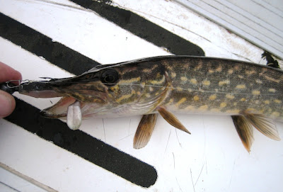 Men inte riktigt det som tänkt var. Dvs Mört att meta Gös O Gädda på till kommande K-Flyg-Safari. Fick tre plus 7-8 Abborrar. Och så denna grova Gädda på en släpad jigg när jag rodde mot metstället.