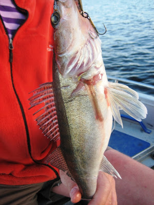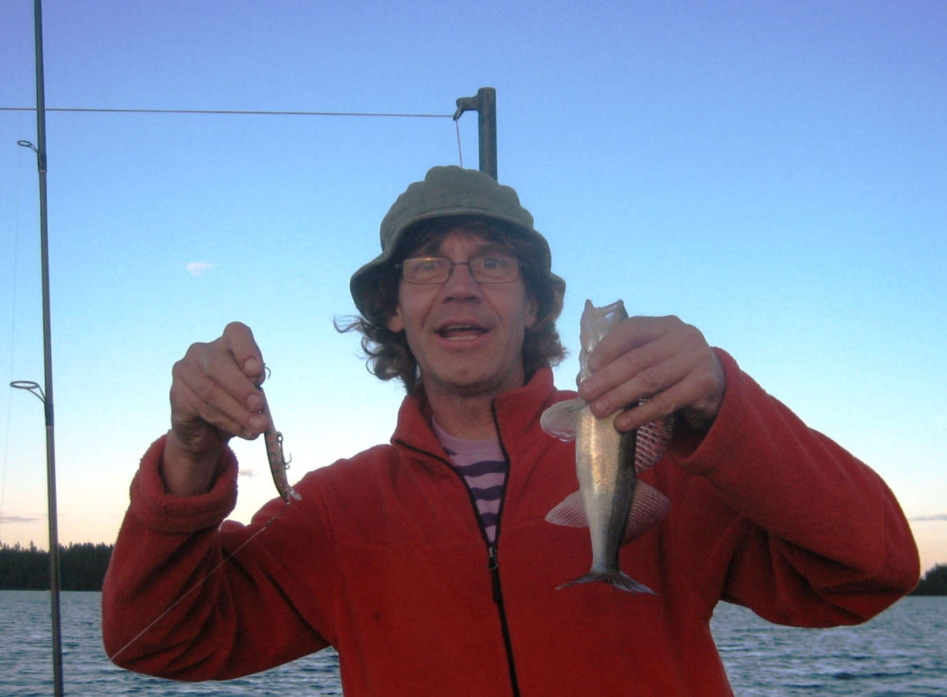 Efter ytterligare ett par timmars idogt körande nappade det ånyo hos Mats, en liten Gös på kanske 30 cm.