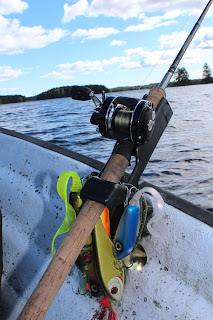 Efter en stunds fiskande av Daniel så bildas som oftast en julgran någonstans i båten. Själv hade jag med mig min nya beteshink så hade lite bättre överblick över mina drag däri.