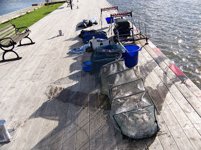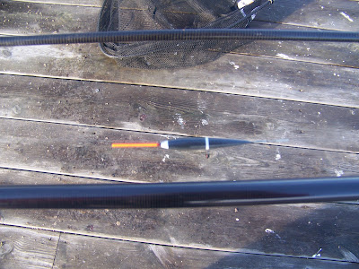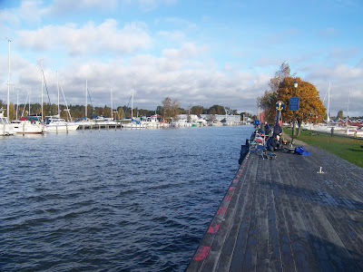I rigged up 1 x 3m , 2 x 4m ,1 x 5m ,1 x 6m whips using DINO 'Scandanavian' 3 ,4 and 5gram floats also kitted out using 1 x 6m EA2004 and 1 x 8gram EA2004 . The flow was really hard so holding back was essential . The first 1 hour was quiet for me with only about 10 fish but the match length got better the further the pegging went towards the harbour . In the last 3 hours alot of skimmer ,Bjorkna and Roach were taking corn at crazy depths , sometimes as soon as it hit the surface !! I bagged heavily at only 3metres and was launching out fish i would normally lift out with a landing net .