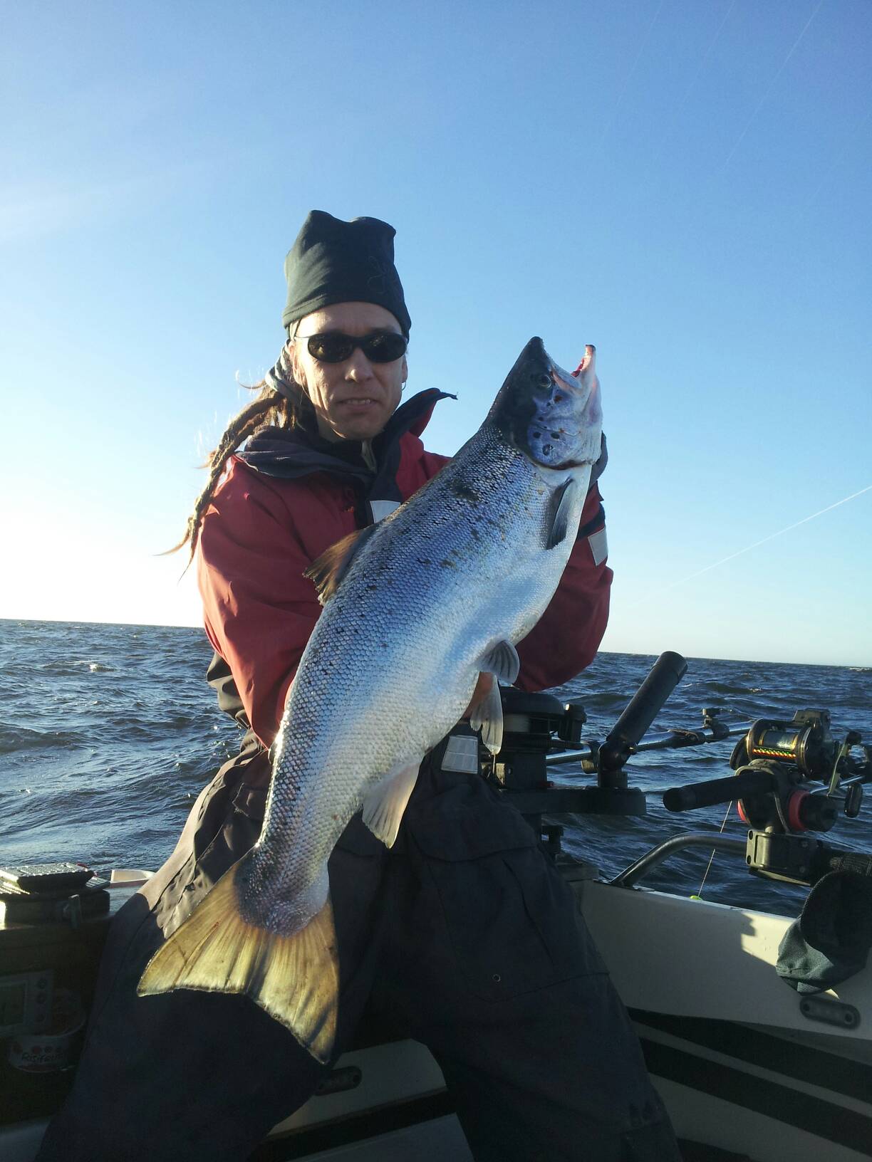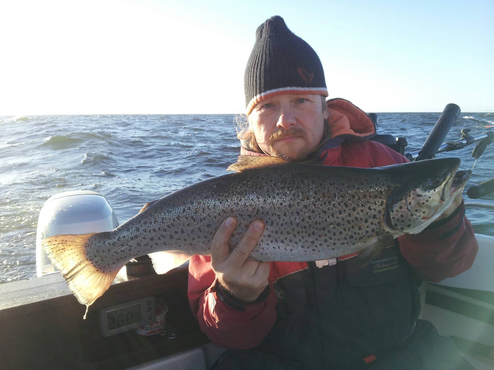efter 45 min fiske kom första lilla laxen sen en lite finare 75centimetare och en öring på 68.