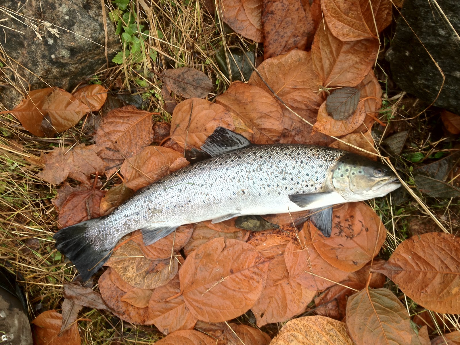 Idag var det första dagen på en vecka som jag for ner till älven och fiskade efter lite havsöring och fisk blev det också, jag tog sovmorgon och åkte ner runt 08,15 och då var det bara en person i hela viken, började direkt med att tappa en fisk strax innan landning.