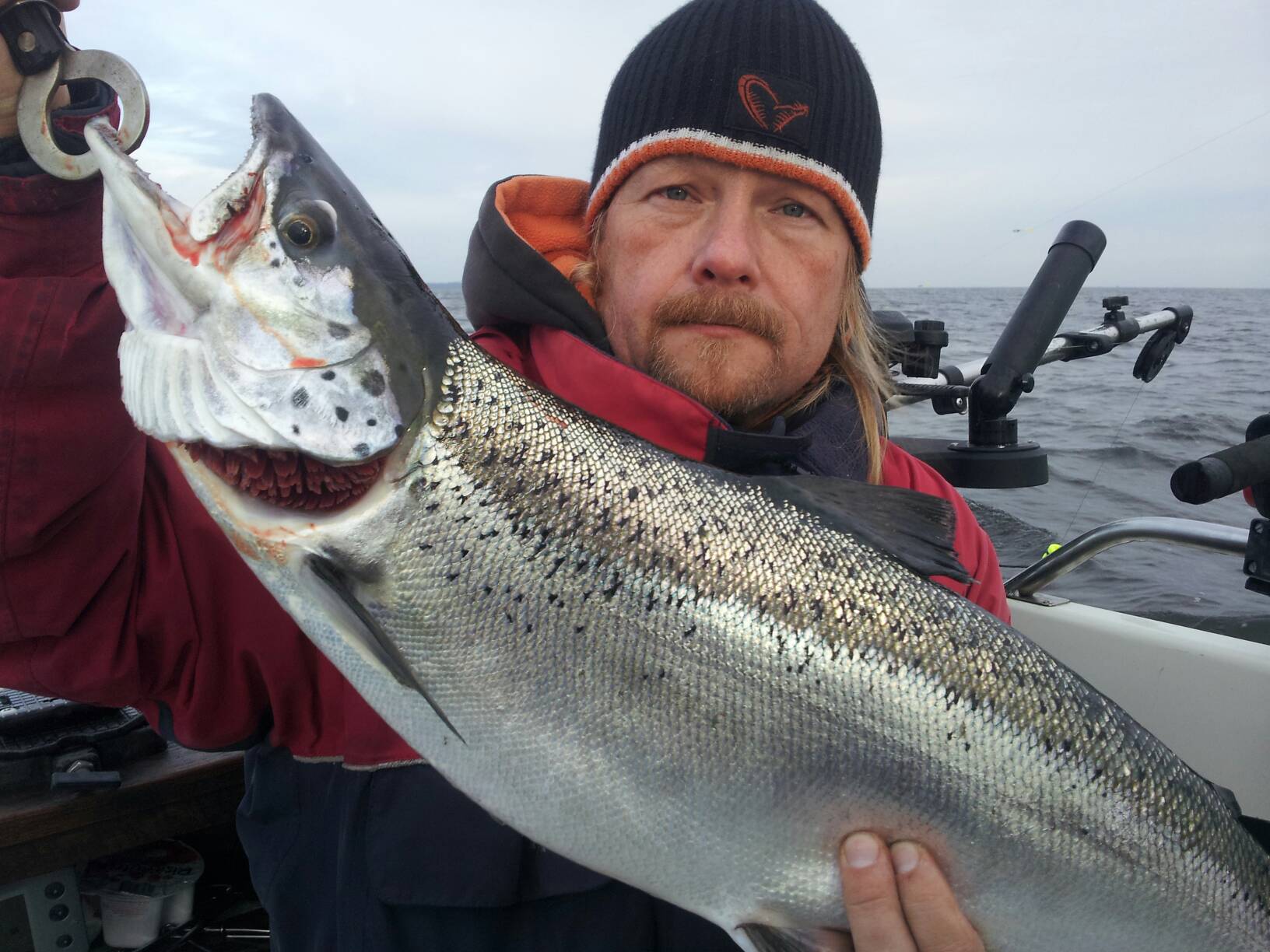 Svårare att knäcka koden idag, men en liten Strike pro genom ett måsdyk gav resultat. Gk lax i båten  :-)