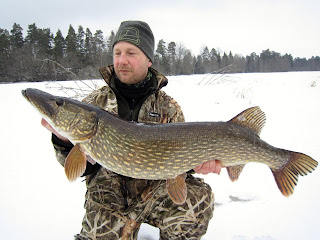 Detta är än så länge min största gädda från gölen och den togs på ett lätt pimpelspö och ett softbaits! Samma dag, hade jag 4 ismetespö ute i samma område, med fina livebaits, dock ingen regnbågar.