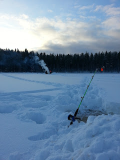Idag for vi ut fast än det var kallt. I jakten på första ismete gäddan så drog vi ut eftersom även idag ville Kenny och Simon testa chansen!