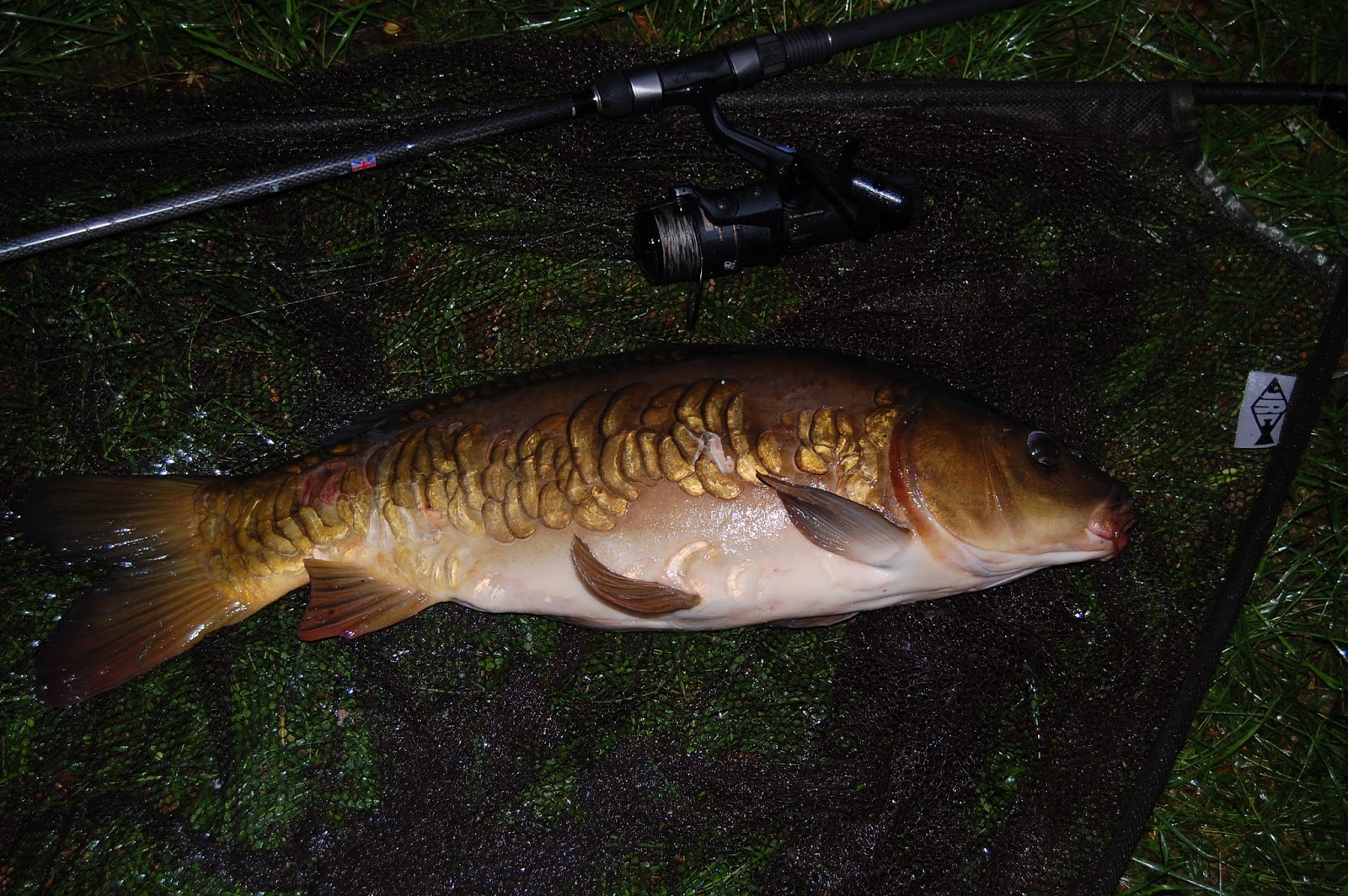 Det blev dock denna karp, som föll för en flytande brödbit, ett bete, som syns ganska bra i sommarnattens sken och ingen karp vid sina fulla fem sinnen låter bli en väldoftande brödbit.