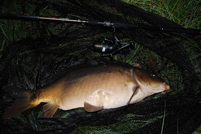 Så gjorde denna tjockis på platsen på den översta bilden. Karpen var ensam och gick väldigt länge, en bit ifrån mig och trilskades med mig, typ en bit där och en bit här och då är det svårt.
