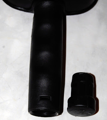 I handtaget på dessa skopor, finns det en avtagbar plugg och det finns ett litet hål för skruven, som ska hålla ett eventuellt skaft på plats.