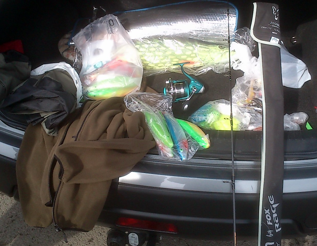 Christer hittade några feta norgejiggar vad jag kunde se, plus en jacka o en påse rökt korv.