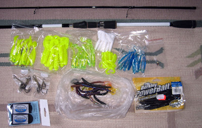 Själv fick jag fatt i 60 jiggar för en hundring, en liten påse gummimaskar, ytterligare två mormyskor och det som jag hoppas var mitt mässfynd, ett 9,2 fots jiggspö. Tunt o fint i klingan och med seriös ryggrad. Lite taskigt bara att de på svindyra spön inte kan skicka med kork så det räcker till hela handtaget...