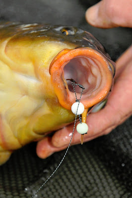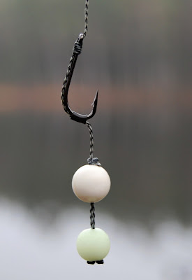 Karpen kan vara lynnig av sig i vissa lägen och kanske försökar att sno åt sig ena betet, men båda hänger med, vi vet nog alla hur de kan och vill rensa en mäskplats, utan att de rör krokbetet och denna rigg kan lura dem under vissa förhållanden, var fisken är på sin vakt.