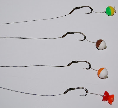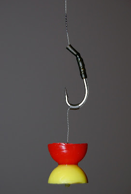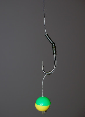 Något annat som blåsar karpen på konfekten är detta. Allt du gör är att du monterar en sjunkande 10 mm fakeboilie och den ska sitta över hairknuten och sen monterar du en 6 eller 8 mm flytande fakeboilie av typen Nite Glow.