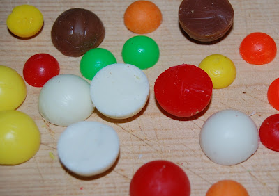 Dessa gummikulor är sega, men det går bra att dela dem med en riktig vass kniv av typen mattkniv eller liknande, men akta fingerna, så du inte slintar.