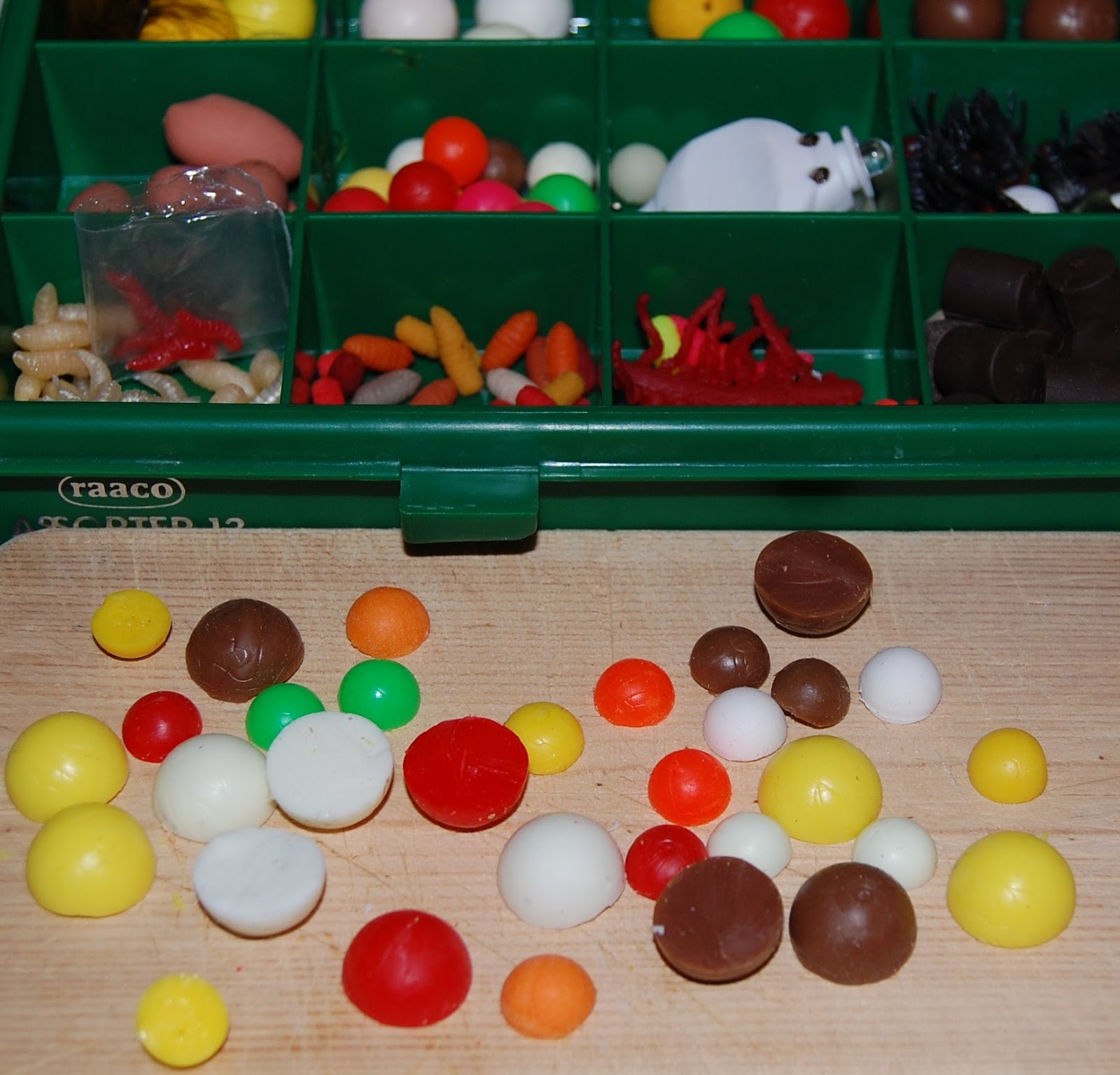 Dessa gummikulor som föreställer våra boilies finns i flytande och sjunkande versioner och i alla regnbågens färger, samt från 6 - 20 mm och det är bara för dig att välja bland dessa stutsbollar.Dessa går att köpa numera i halvor, som flyter och som man kan para ihop med riktiga boilies, jag vill ha gummi hela vägen ... jag är man ..nej ni vet nog vad jag menar, jag vill ha gummi i hela betet.