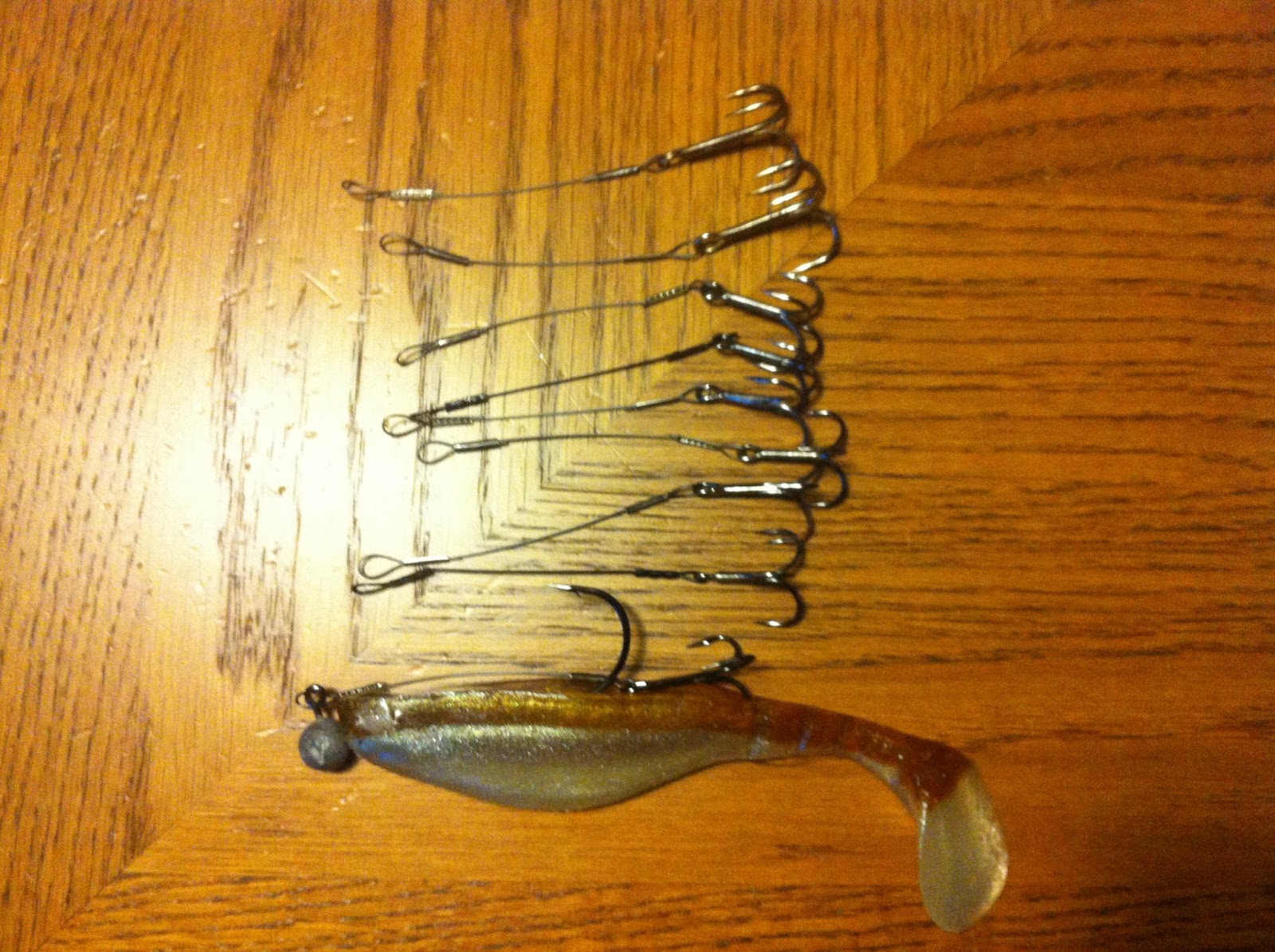 CL-Shad 21 tacklad med shallowskruv och 2 dinglande 3/0 or under som sitter fast via spikes