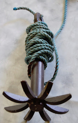 Jag hittade först detta gamla ankare, som är okay för en gummibåt, lite ny lina ska fixas under kvällen och sen är det okay att använda.
