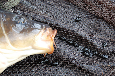 Nu är väl tiden med grodyngel snart över, men hittar du dessa svarta läckerbitar, så är karparna där eller i omedelbar närhet och de har kalas, så länge dessa finns att tillgå. Fiska med ditt bete ibland dessa eller prova med en liten bakdel av en svart eller brun jigg, som du fyller med luft, så denna flyter och jag garanterar att du får ett take, likaså kan en liten bit kork, som håller två små livliga lövmaskar ge bra resultat.