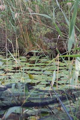 Näckrosbladen döljer dig till en viss del och med små sakta rörelser kan du sitta väldigt nära fisken, ditt spö klarar det, din braid kommer att rensa upp bland bladen, den mentala biten är på plats och nu kollar du vad som finns under bladen med dina polaroidglasögon. Okay, en gren där, där ska den inte få komma och in där under busken, ska den inte o s v.