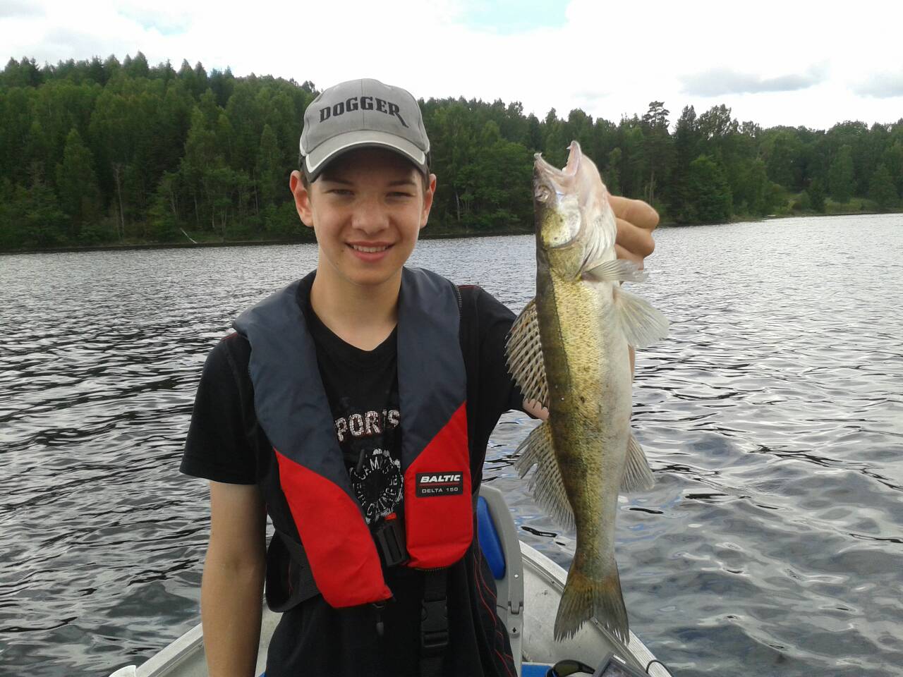 Ingen stor gös och inte rekordmånga heller, men däremot lyckades vi lura 6st av dom pelagiskt. Fruktansvärt kul när man lyckas parkera båten över dom och sen se hur dom möter jiggen innan dom hugger. Tyvärr är det väldigt få stora gösar i den här sjön, men nästa helg ska vi besöka två riktiga storgössjöar om vädret tillåter  :-)