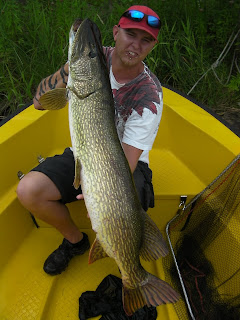 Gäddan gav en riktigt fin fajt med ett par rusningar ner mot djupet, men hon fick ge upp ganska fort och landa i håven för lite återhämtning.