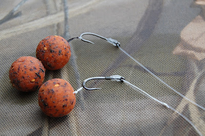 Jag använder både Snowmans och sjunkande boilies på denna rigg, mest blir det två sjunkande beten eller så förlänger jag hairet ytterligare och monterar ett fakecorn eller liknande.