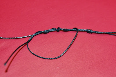 Lägg ena braiden mot den andra och gör en stoppknut med 6 - 8 varv och strama den lite ...