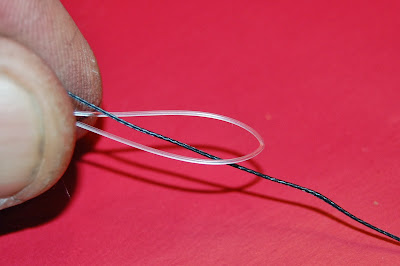 ... knuten är klar och du kan trimma den med en sax och limma den med snabblim om du så önskar. Du har nu en liten fin knut som t ex håller ditt Tungstensputty på plats på en pop - up - rigg.
