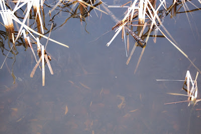 Skulle vinden vara kall och solen inte kommer fram, så kan karpen bara gå in ibland stråna och söka skydd och där finns jo födan som är kvar.