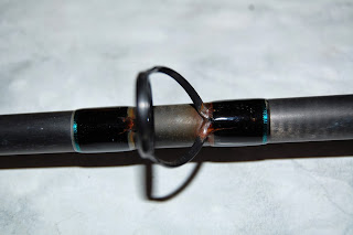 Klingan var lite repat och behövde lite lack här och där. Vad som förvånar mig är den dåliga finishen på ett så pass dyrt spö, men samtidigt så är det byggt för insjöfiske i USA, i sötvatten och inte för bräckvattensfiske i Kalmar sund och ...Jag kollade snabbt över spöet och frågade honom, om han hade haft det efter bilen från Träkånten, Slynan svarade aldrig på detta och jag lugnade ner honom med orden - Det fixar jag åt dig!
