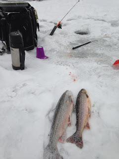 som det ska vara när man fiskar röding. [/FONT][FONT=Verdana] Hade några till på gång men sen blev det byte av tjärn till öratjärn, jag började där vi haft kanon fiske sista gångerna och fick en liten båge och en mindre öring där och gjorde en flytt ut på djupet , att en bra stund men inget napp ,veva upp blinken och kolla in betet och sänkte ner igen men bara 2 meter under isen, är 13 meter där jag satt så det är rätt högt upp,napp !! E[/FONT][FONT=Verdana]n fin röding på ca 8 hg och det fick avsluta denna härliga dag på mina favorit tjärnar och blir nog ett återbesök på söndag som det verkar ,var även till en annan härlig tjärn idag och testa båge fram till kl 12 och fick mig några fina bågar. [/FONT][FONT=Verdana]Björntjärn kan man lita på och har gett mig attans på att jag ska ta en av 6 kg bågarna som simmar runt i den. [/FONT][FONT=Verdana] Skit fiske på er // Thomas [/FONT]