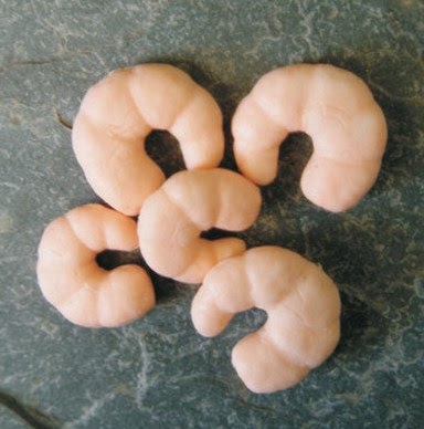 De är hårdare än en vanlig räka, men de sitter fast på kroken och Regnbågen kan inte pilla av dessa falska räkor, som de kan med vanliga och det är ett stort plus.