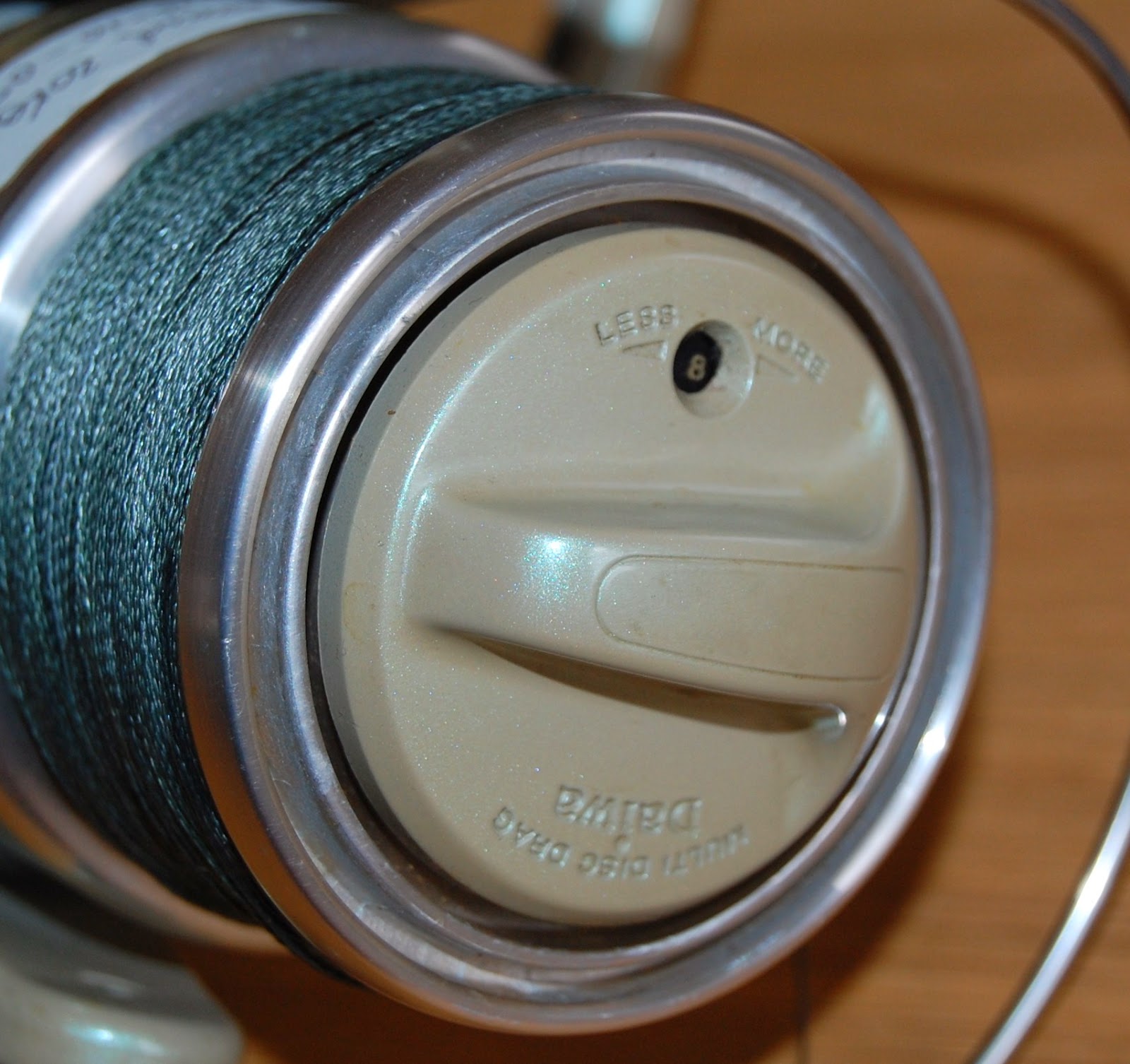 Kanonfin linelay, bromsen bak på rullen och vill man ha att spolen ska gå trögt eller lätt, så finns det möjlighet att justera detta på ratten, som sitter precis ovanför bromsen.