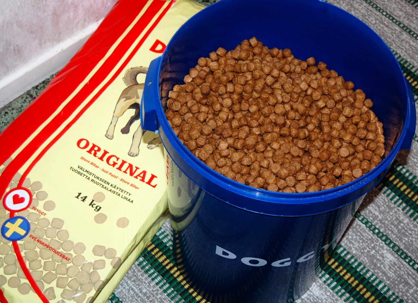 3 x 14 kilo stora och små Doggy hamnade i källaren och nu klara man sig ett tag. Jag har dem i dessa tunnor från Doggy och där håller de sig bra och så färska som bara är möjligt.