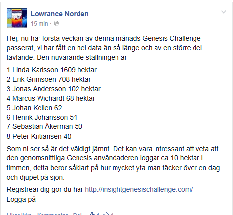 Mai er godt i gang, og det er flere enn Team Colibri som logger data. I dag la Insight Genesis Challenge og Lowrance Norden ut den foreløpige resultatlisten for mai på Facebook.