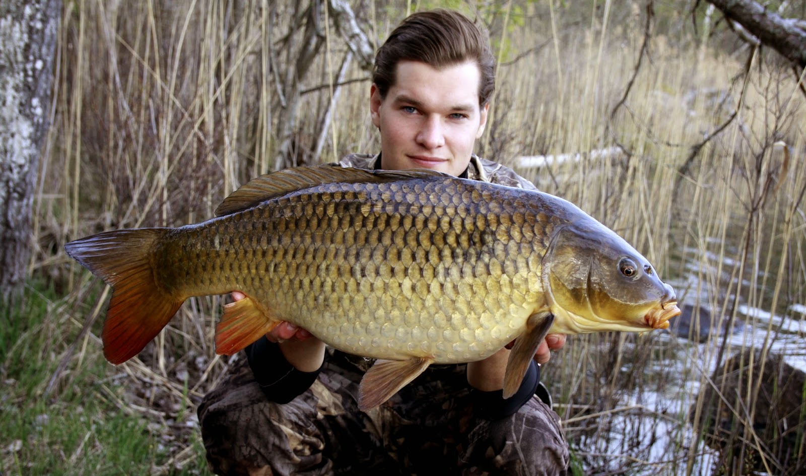 Denna karpen är tyngre och bjuder på en bra fight, men snart får den ge upp och Razze kan håva passets första karp.