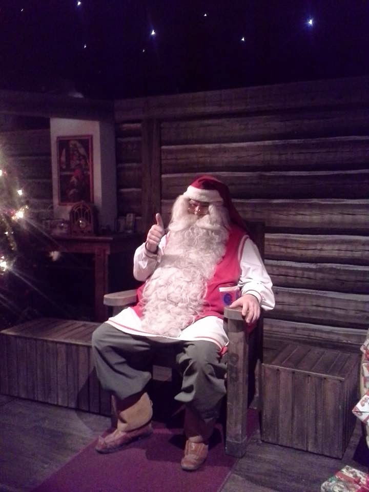 Måndag förmiddag samlades vi här i Kållby vid 09.00 tiden. Vi började stuva in grejjerna i bilen och konstaterade rätt snabbt att det här blir fullt och så blev det. Med bilen packad och klar så startade vi norrut. Första pausen tog vi redan efter 3km. Bara drygt 1000km kvar. Efter det körde vi norrut, åt i Ii och fortsatte ända till polcirkeln i Rovaniemi. Där stannade vi och drack kaffe. Träffade också julgubben så för de av er som inte tror att han finns ska jag göra er besvikna. Ni har blivit lurade. Stannade och pratade med honom en stund innan han önskade oss en fin fisketur och vi körde vidare.