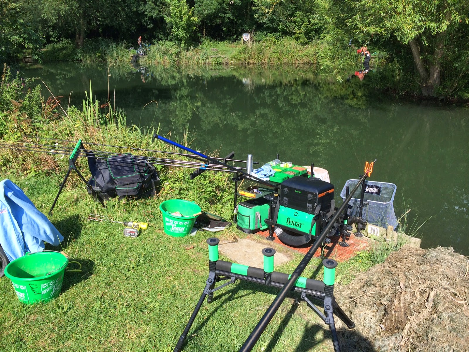 The previous days weed clearance had given some clearer channels through the weed but the hot sunshine day seas not complicit to good fishing with the water looking very clear as the 'lumps' swam around the pool followed by speeding shoals of Roach and Rudd who were not that interested.