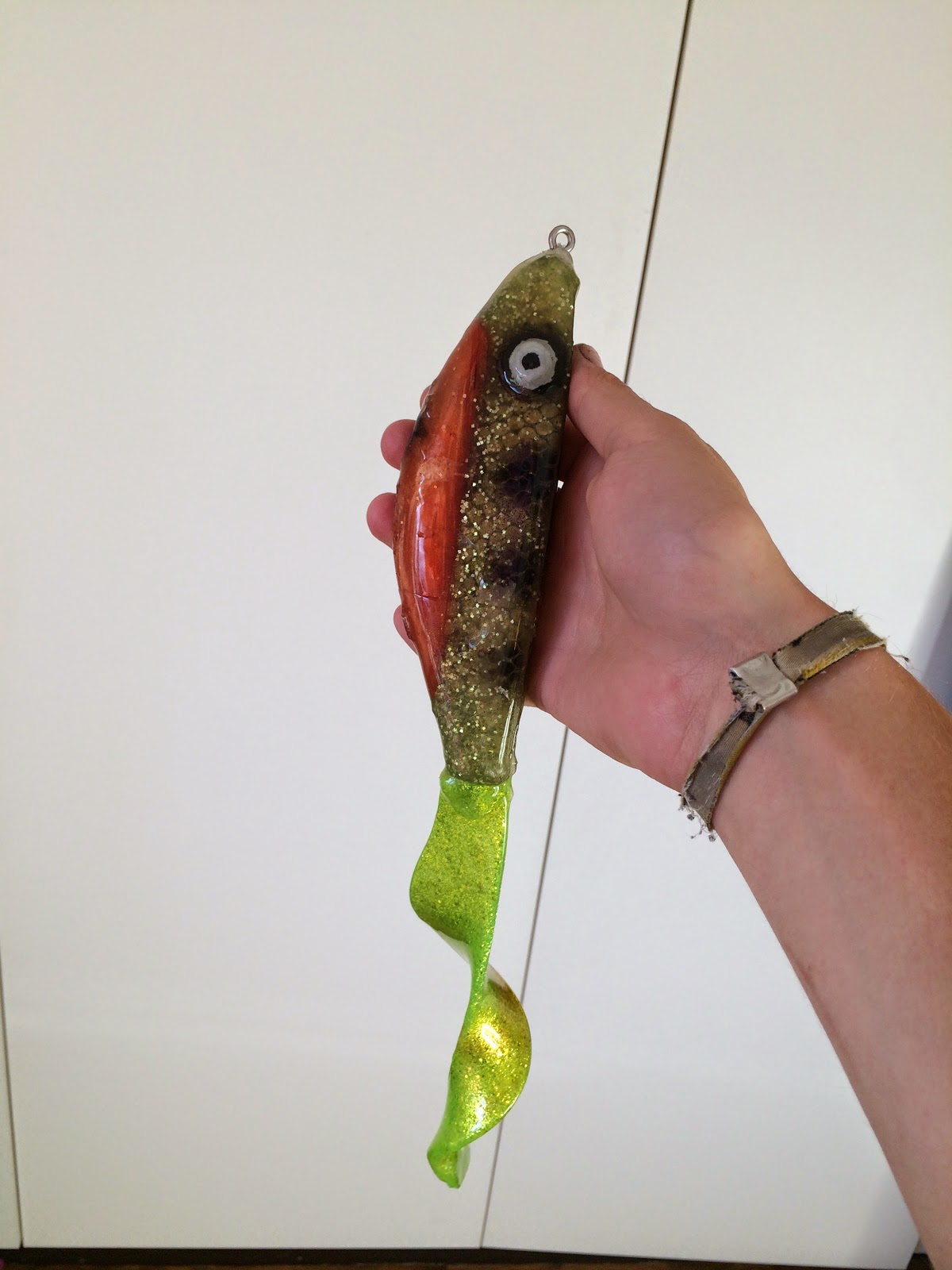 och vad gäller gummibiten så är jag oerhört ny på området. Började med en taffat form i vintras, men gjorde en mer genomtänkt shadform nu istället där jag både kan gjuta in paddel och tail i formen!