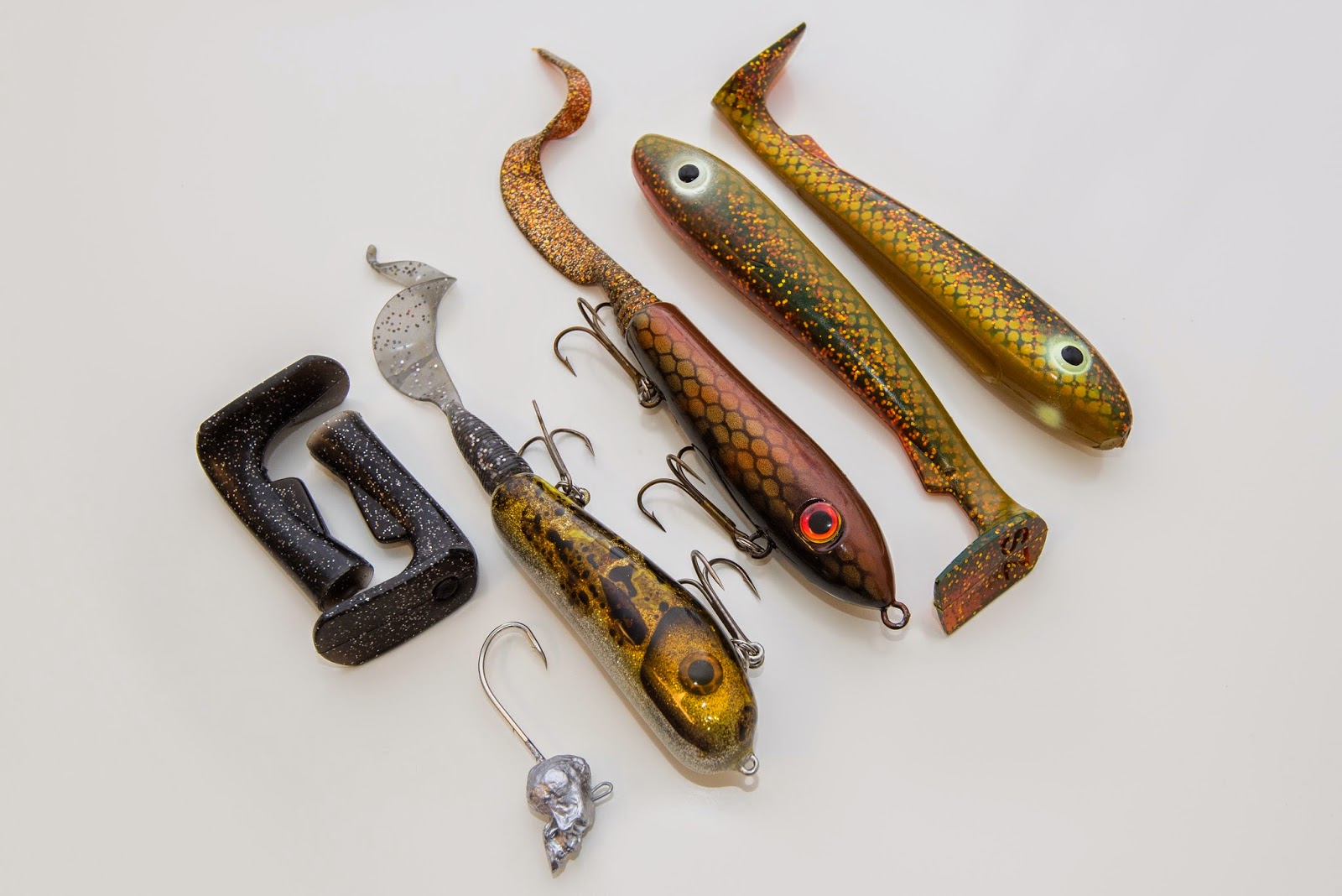 | Svartzonkerpaddlar, Mr Mayhem jiggskalle, Mälaren Lures Luring Reed, Svartzonker McTail V2 Jaktia Kexlake, Svartzonker McRubber V2 Jaktia Golden Brown Burbot |