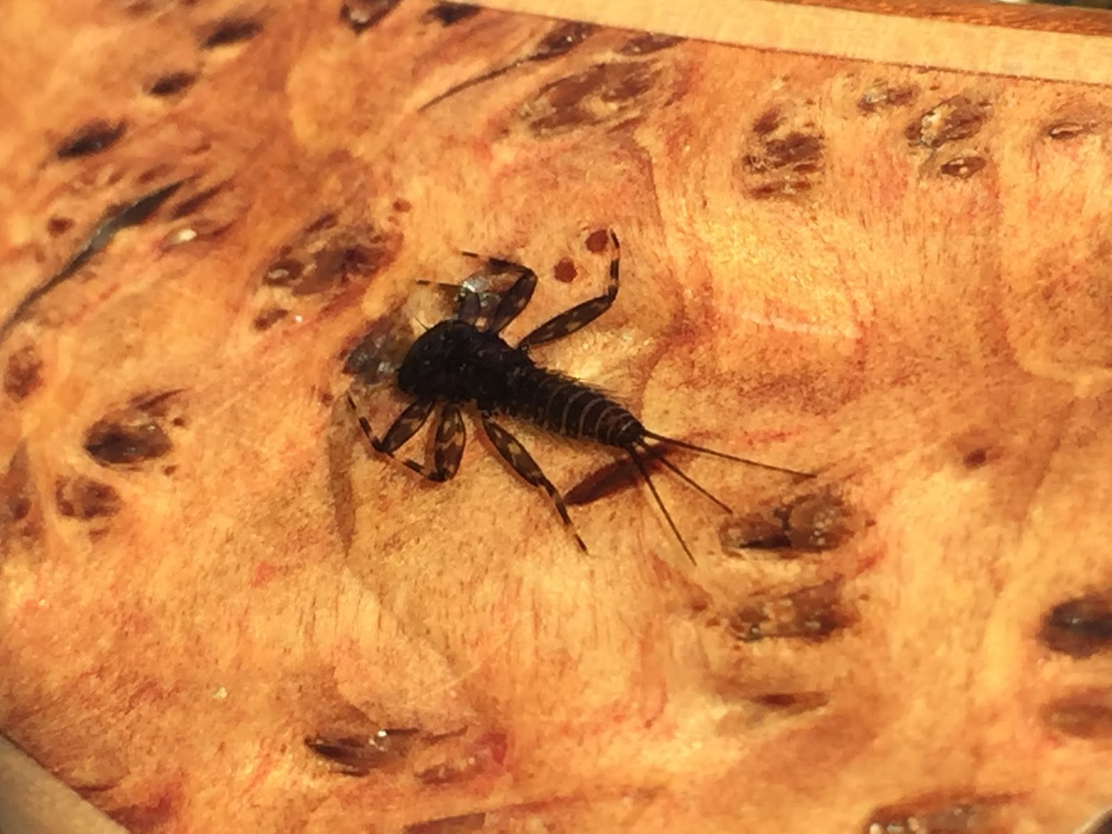 Denna lilla krabat var också nyfiken på bäcksländenymfen.