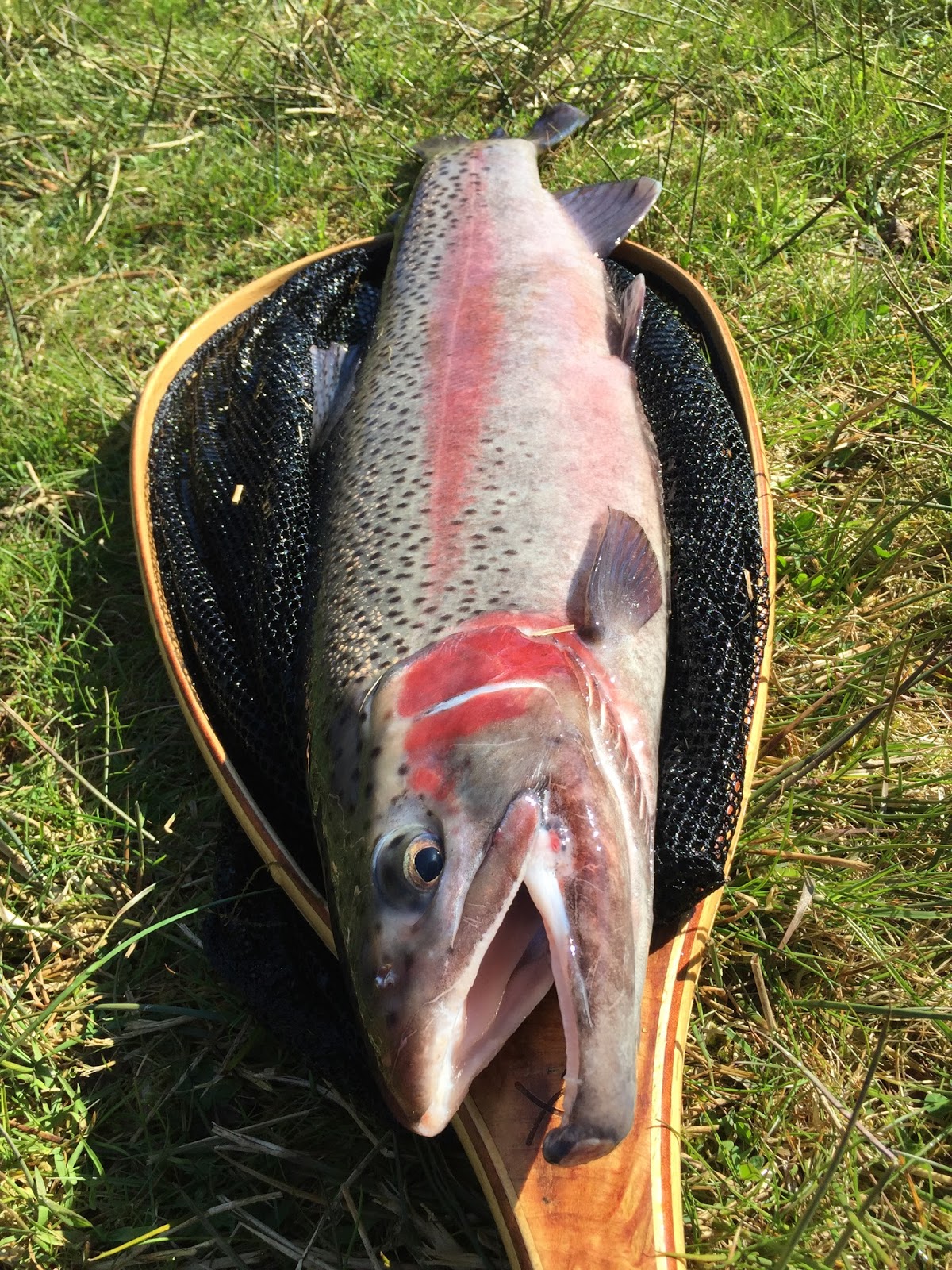 Torrflugorna byttes sedemera ut till smånymfer och med en spider red tag #16 fångades dagens första firre. I det otroligt klara vattnet - och med lite hjälp från solen - såg vi att regnbågarna stod apatiska i både dammen & poolerna. Lekskador & lekbeteende var ett faktum - men skam den som ger sig.