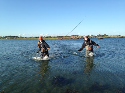 Vi bytte till djupare vatten och det var nära att både jag och Edla landade varsin fisk på fluga men min förmodade snultra lossnade då den simmade in i tången och Edlas troliga öring överaskade med ett snabbt hugg på djupt vatten.