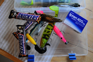Satsar på gummi. I olika storlekar, färger och modeller. Med olika vikter på skallarna. Allt från shallow-skruvar till 30 grams skallar ska förhoppningsvis hjälpa mig att hitta rätt i morgon.