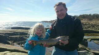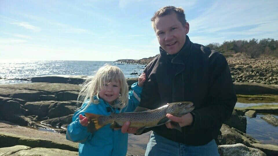 I söndags tog jag med mig två barn och en fru för att se om öringarna var på G. Vi åkte till Grötvik, njöt av vädret och tog några kast.