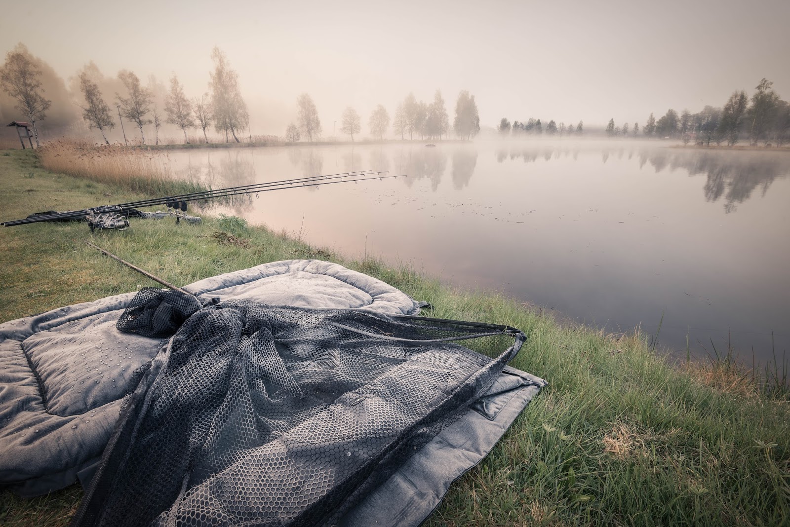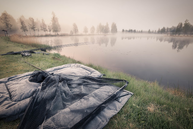 Lite halvknäckt gick jag och smällde upp tält och placerade ut tre bottenspön med samma riggning som förra gången. Sen kom natten, frosten och morgonen.
