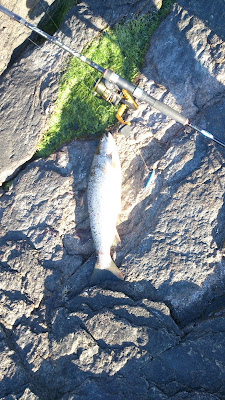 Jag la ner borrefisket och satsade på kikfiske i en närliggande hamn när skymningen kom. Fick nytt personbästa på skrubba, 770 gram fördelat på 42,5 cm. Annars inget spännande....